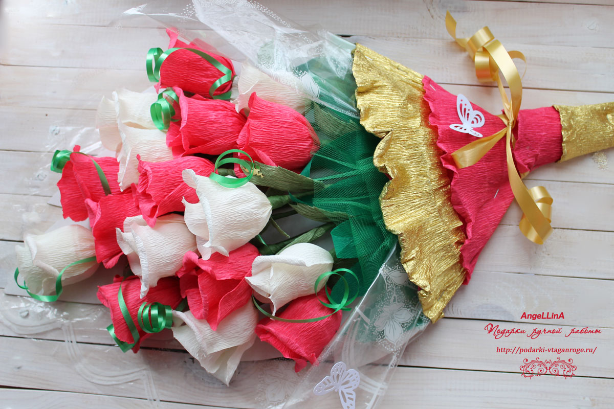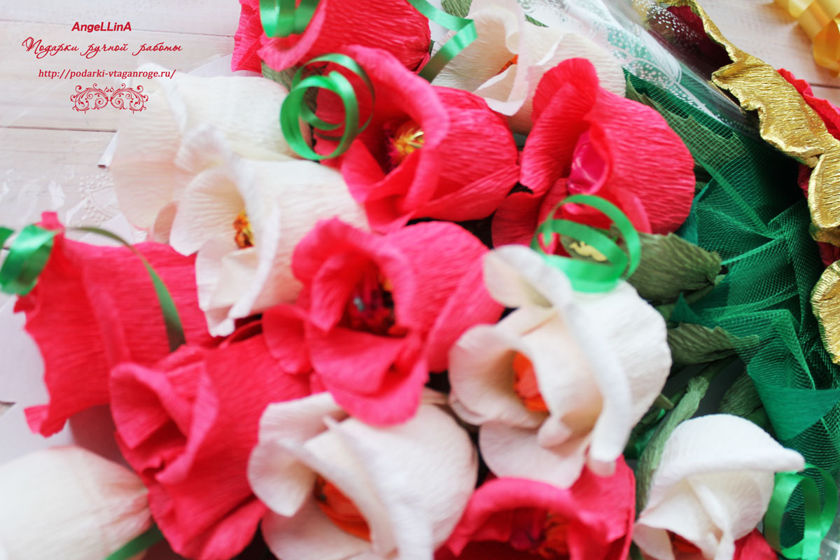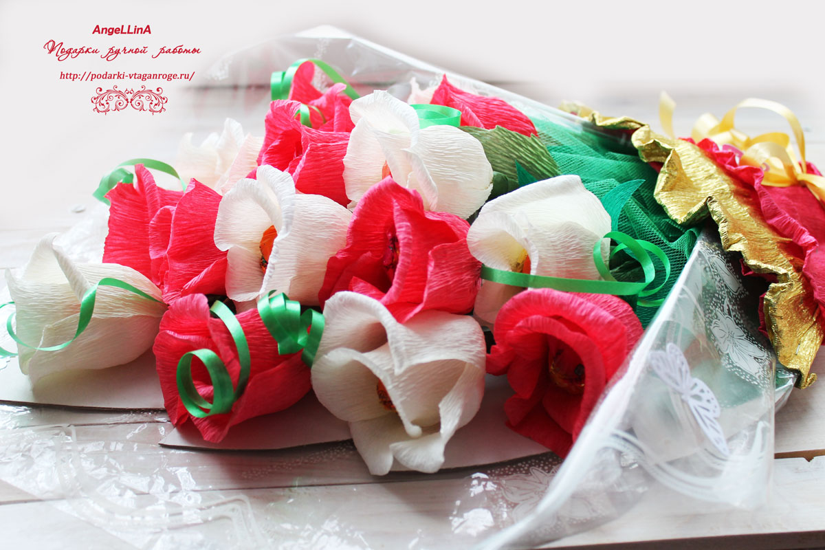 Хочу показать Вам вот такой букетик из конфет. Внутр роз конфетки.
